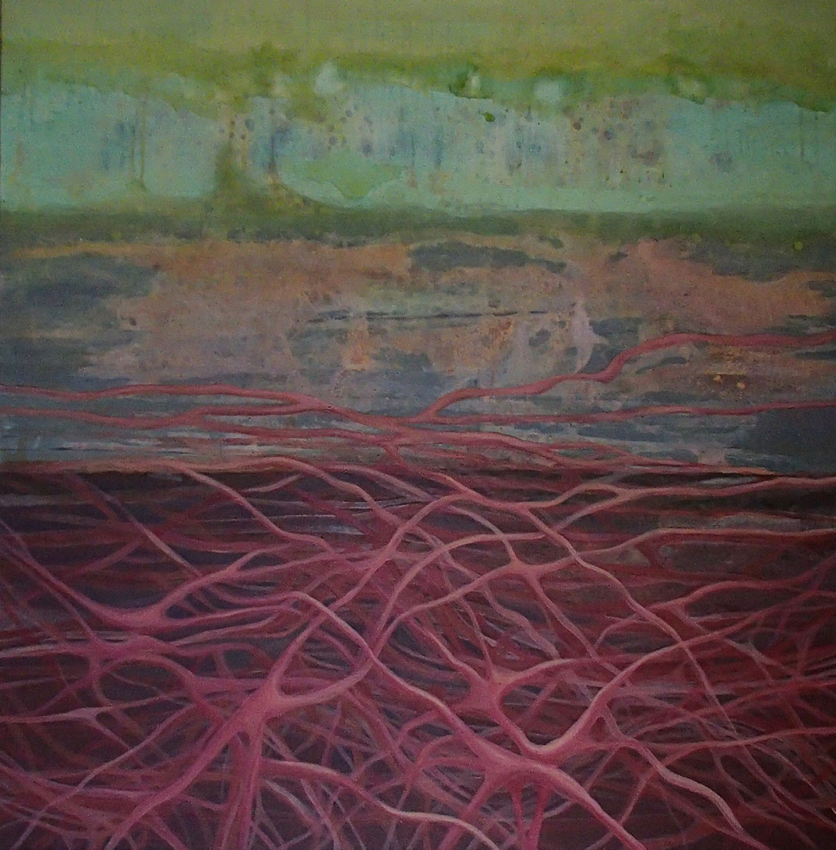 „Między przestrzeniami 2”, 100×100, akryl na płótnie, 2017.